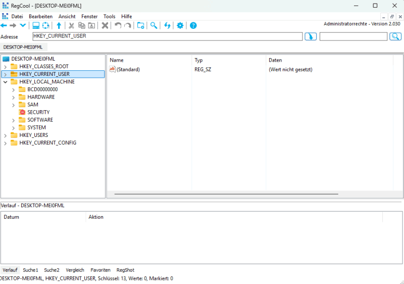HKEY_LOCAL_MACHINE - HKLM Admins: Vollzugriff, User: nur Lesen. Hier werden von allen Benutzern geteilte Einstellungen und Informationen gespeichert.