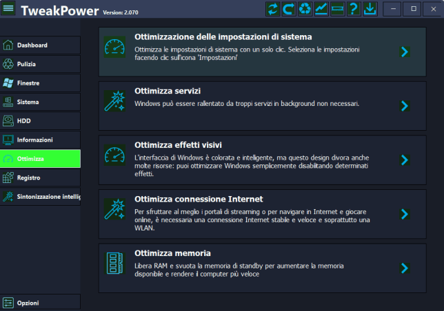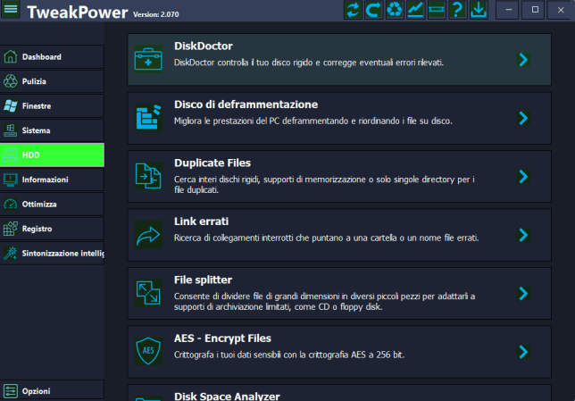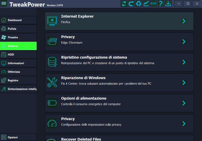 TweakPower ti offre numerosi strumenti per ottimizzare Windows. Tutte le funzioni del programma TweakPower sono consolidate in un'interfaccia utente accattivante e sono facilmente accessibili. Il software semplifica i complessi processi di ottimizzazione, anche per gli utenti inesperti. TweakPower offre accesso diretto a molte impostazioni di sistema e opzioni nascoste. Con il software, puoi sostituire le icone di sistema e del desktop, ottimizzare le impostazioni di rete e ottimizzare la RAM. TweakPower gestisce anche le impostazioni di unità e sicurezza. Su richiesta, il programma può pulire il disco rigido, dividere o crittografare i file ed eliminare definitivamente i dati utilizzando uno shredder.