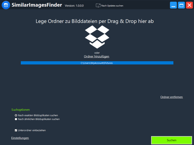 Ziehen Sie Ordner per Drag & Drop in das Feld oder klicken Sie auf "Ordner hinzufügen".