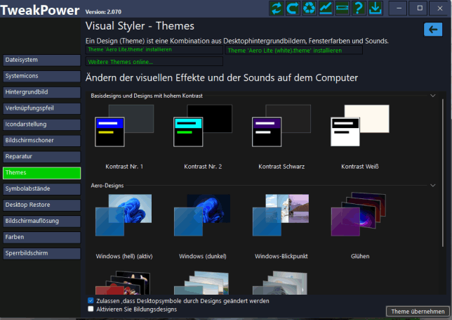 Systemeinstellungen - Ändern Sie die Einstellungen des Systems, der Eingabegeräte, Laufwerke, Anwendungsprogramme und Effekte, um Windows besser an Ihre Anforderungen anzupassen.